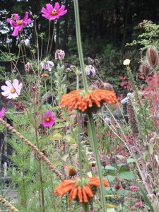 My leonits is in full orange glow mode at the moment – I recently read that it is a tender perennial, so a bit of cosseting will hopefully enable it to come through the winter – hope so, as it has taken 3 failed years to get to this stage. I could not bear the thought of having managed it once, and once only.