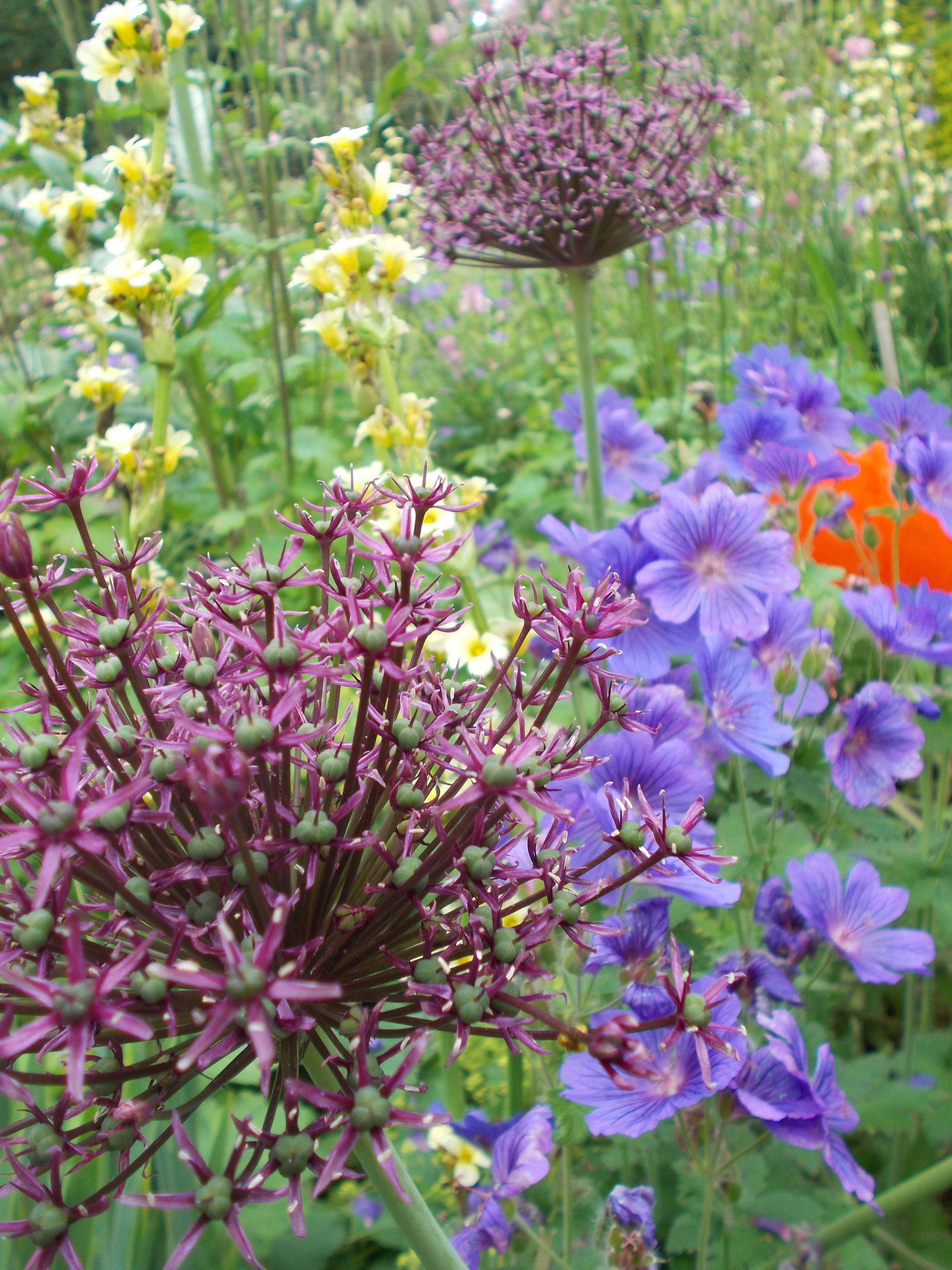 I planted hundreds of Allium Purple Sensation last Autumn, and have watched them emerge and then grow on a really sturdy stem, they have made an incredible impact to many gardens. They look fantastic with Foxgloves, Sisyrinchiums, Roses, Red hot pokers,Peonies and Cercium rivulare Atropurpureum. I have come to the conclusion that they are a must have garden accessory and look fantastic in any planting combination. I fully intend to plant even more later this year.
