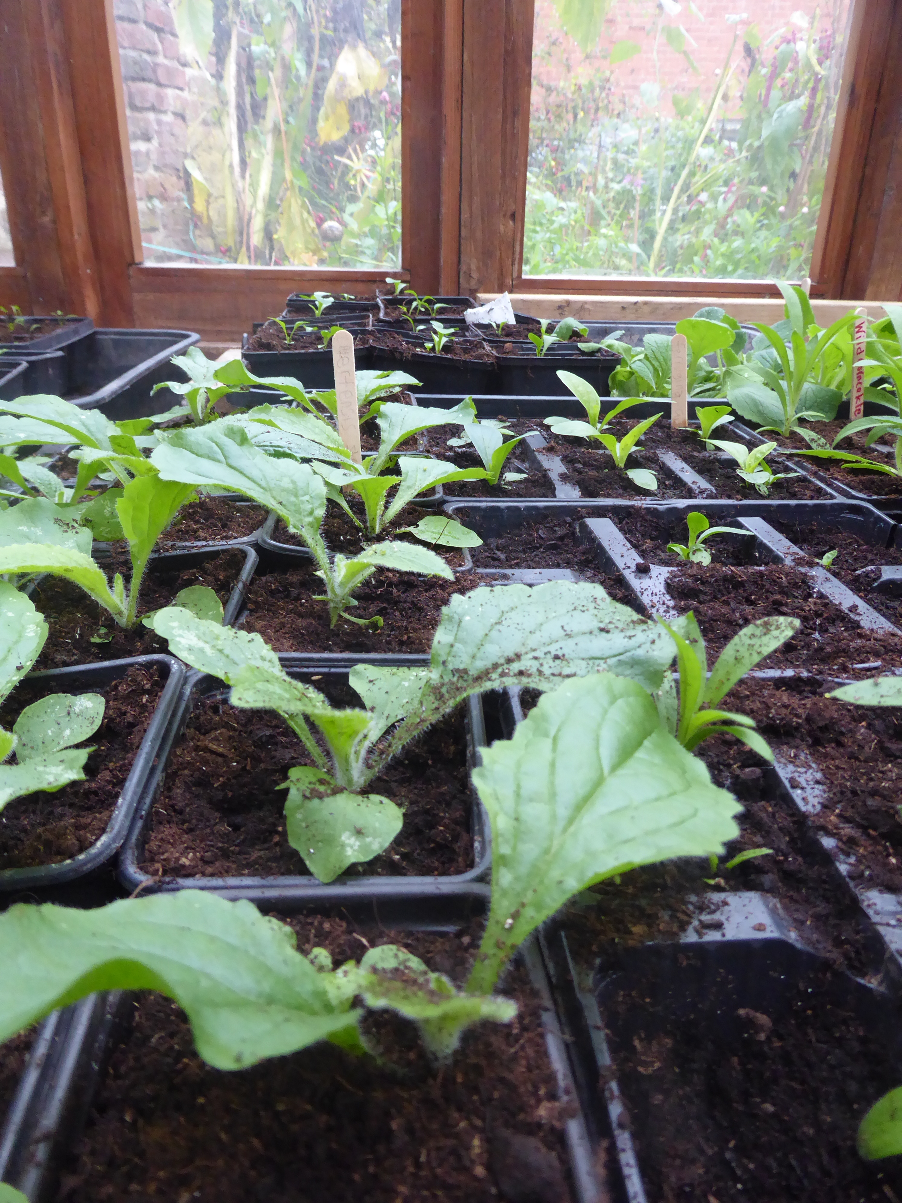 Foxgloves ( which were sown in mid August ) were potted on about a fortnight ago. They will sit on the greenhouse benches throughout the winter, and be planted into their permanent garden spaces in late spring.