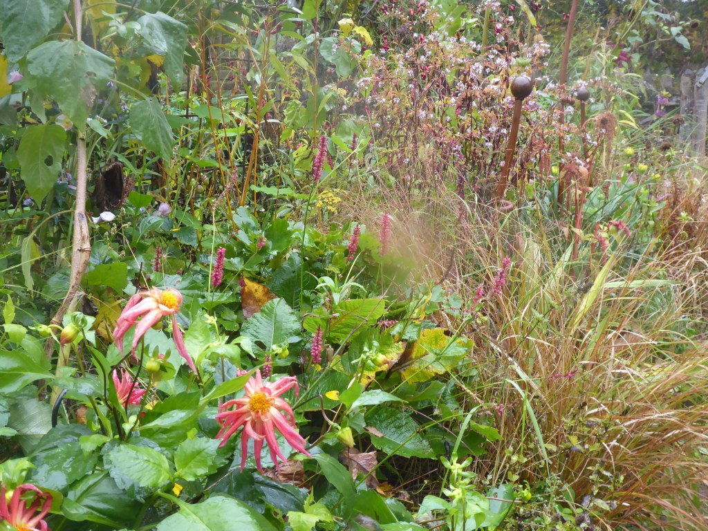 The Aster offsets were potted up at three stems to a 10cm container, and will be replanted elsewhere in spring . I will need to remember how good they are at filling a border though, and try to match them up with an equally invasive root system, so they might balance each other out. I think golden rod should do the trick!