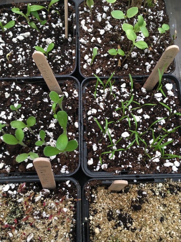 Althea Cannabina was sown on the 12th September, the seed tray sat in my greenhouse and nothing happened. I was reminded that it needed stratifying to germinate ( i.e a cold period to break dormancy). It was put outside, open to the elements, and look what happened , it has germinated – I am truly delighted. This plant will grow in excess of 2.5m and has the tiny pink and white mallow flowers, that last late into autumn. It is a stunner. It may not reach this heady height this year, but I am prepared to wait.