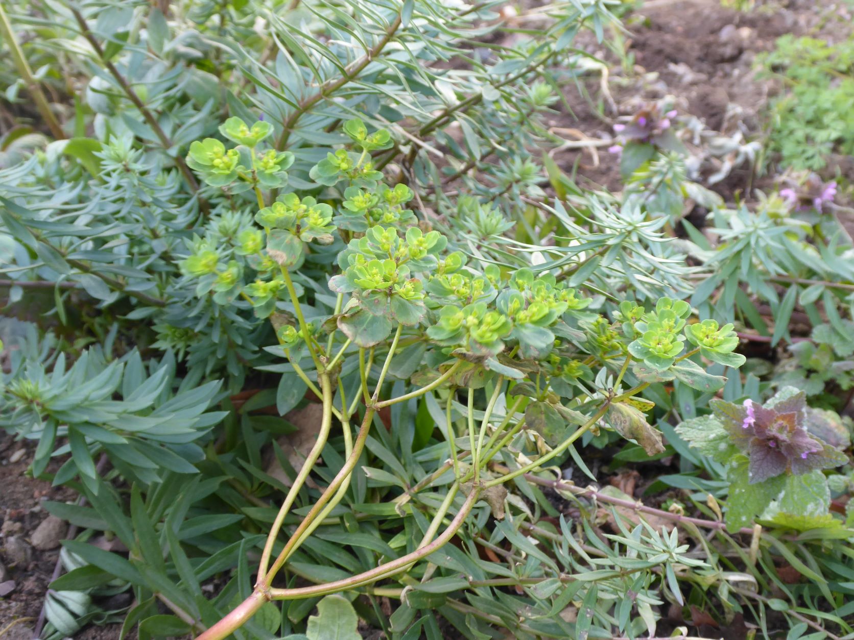 I now take my wild flower book , which enables me to identify what has germinated. Many of the seedlings growing in the top soil are plants that grow in waste land, footpaths and fields. And many are beautiful in their colour and possess nectar rich qualities for insects and birds. They are slowly filling the open spaces, between the cultivated plants which we chose to plant.