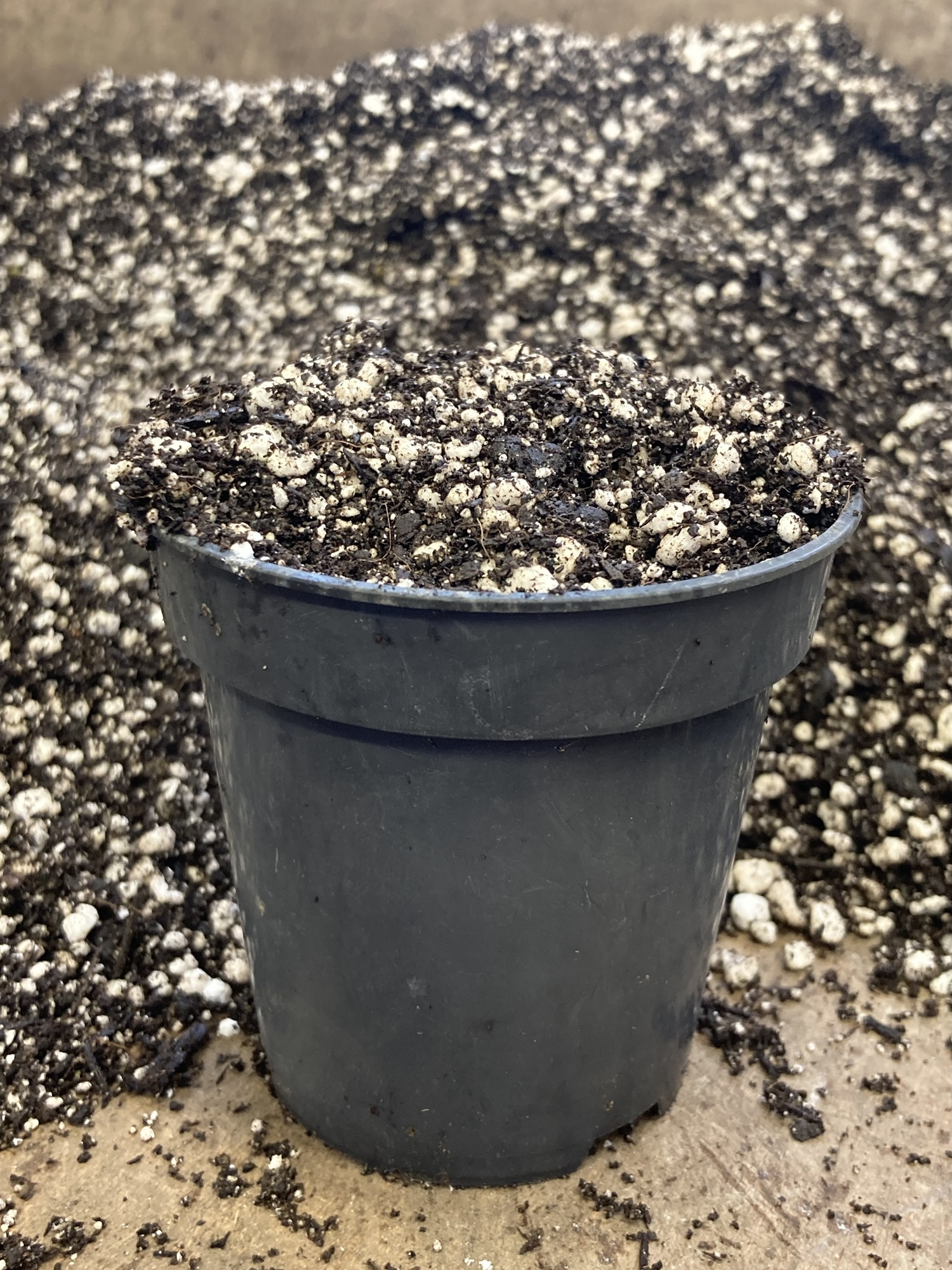 Use a mix of 50/50 peat free compost and perlite. Perlite is used as it is sterile, provides good drainage and helps to prevent compaction of the growing medium. It is important to lightly dampen down the perlite first as it can be quite dusty. For sowing, see images below. Once sown, put outside on a table and wait for the winter weather to start the germination process.