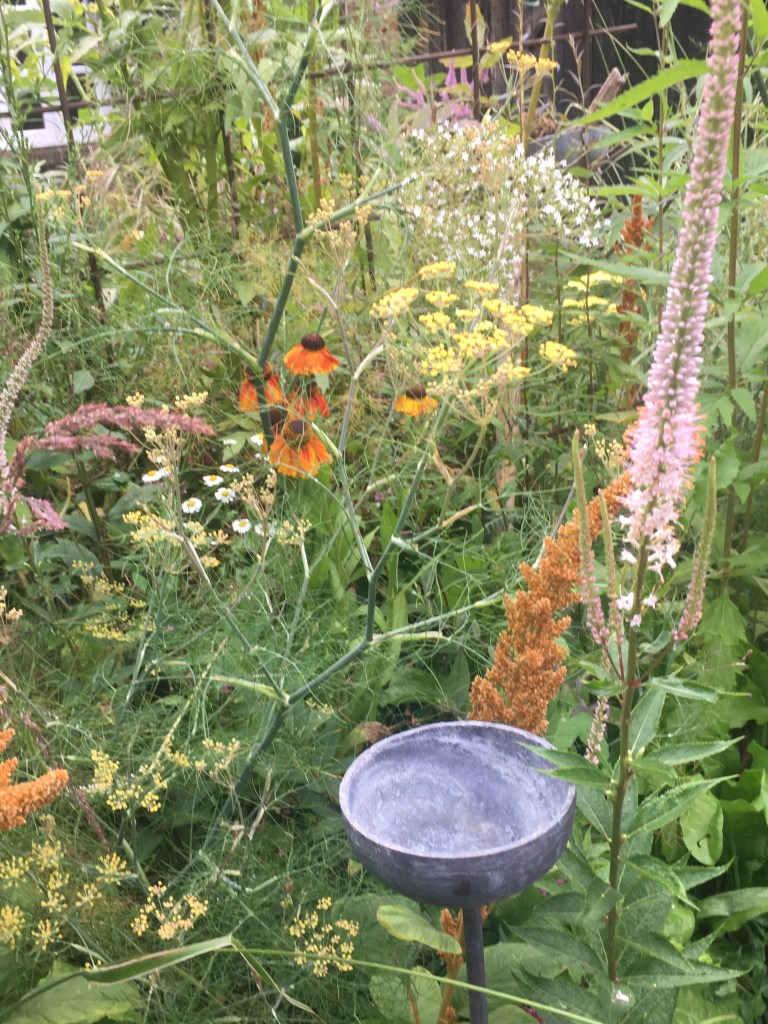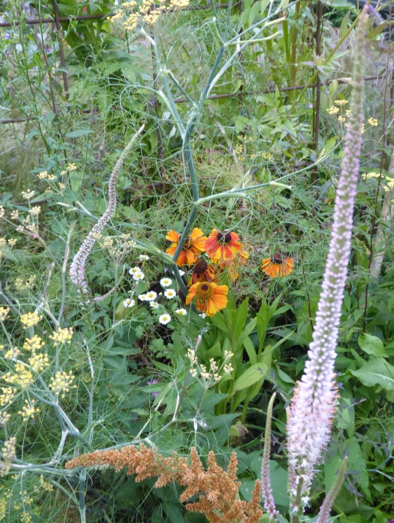 The images below belong to my favourite area of the garden, I truly love the blend of their form and colours. So thanks go to Fennel, Amaranthus Hot Biscuits, Veronicastrum and Helenium.