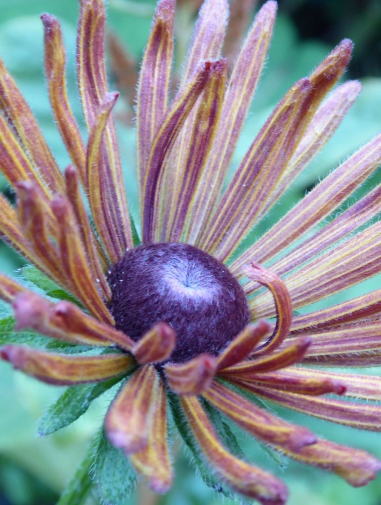 Rudbeckia hirta Chim Chiminee. A hardy annual, grown from seed. In a sheltered position, on a mild winter, it can just about reach into a second year, but it is best to treat it as an annual. Fabulous quilled petals, make it an annual of great curiosity to many. Try growing it.