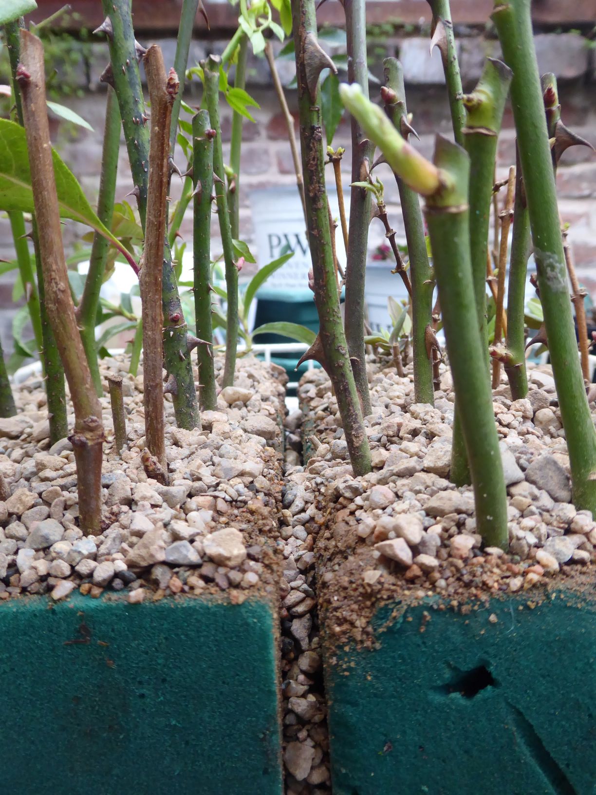 I took some hard wood shrub cuttings in February, and put them in some spare florists foam , I really wasn’t expecting this. As I sliced up the foam, I could not believe how fast the Fuchsia and Roses had rooted. I had kept the blocks in the greenhouse over winter, and made sure they were soaked on a fortnightly basis. I still cannot believe they rooted so quickly.