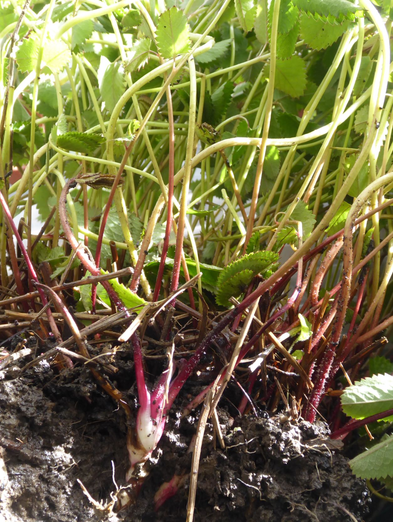 Perennials have been divided. Sanguisorba officinalis ‘Red Buttons’ ( see below ) is a tough, wood like solid root ball to split up. However with my trusty “hori hori ” I was able to divide it up and make 12 new plants. They are all now potted up , and will be replanted as soon as the roots have filled their containers.