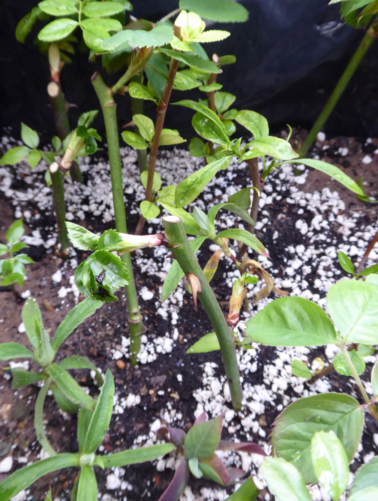 Not all of the cuttings ( taken in Feb ) had rooted, so they are now in my propagation box , which is made from an old polystyrene box, lined with plastic, and filled with gravel , perlite and horticultural sand, and topped of with a lid. The box is a good insulator, so the growing medium is warm, and condensation from the plastic lid, helps to keep the growing medium damp. I check it out every few days, just to see, if I need to provide additional irrigation. If all goes to plan, within a few months I should have even more propagated plants.