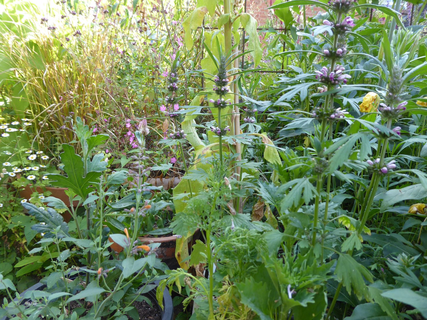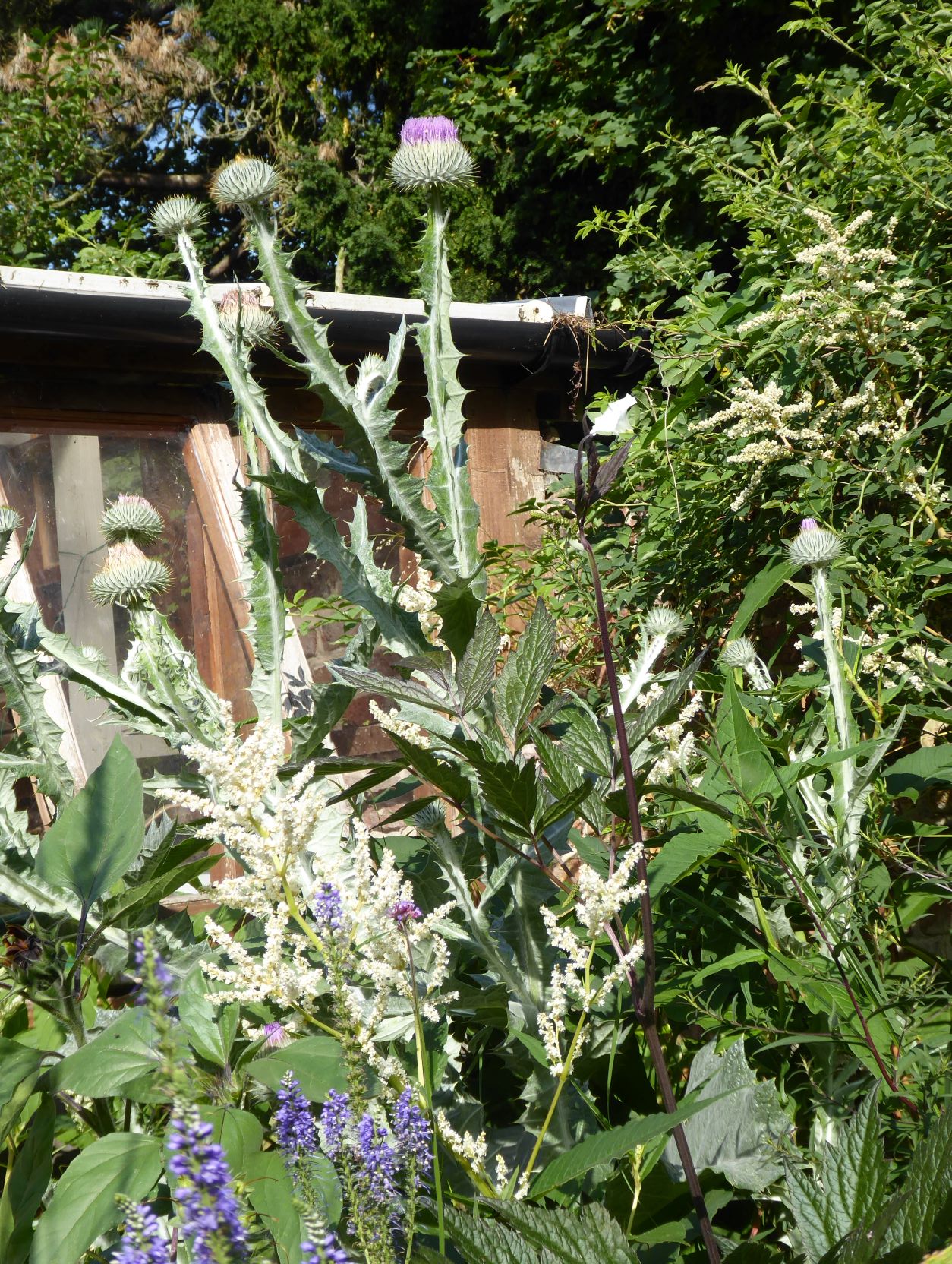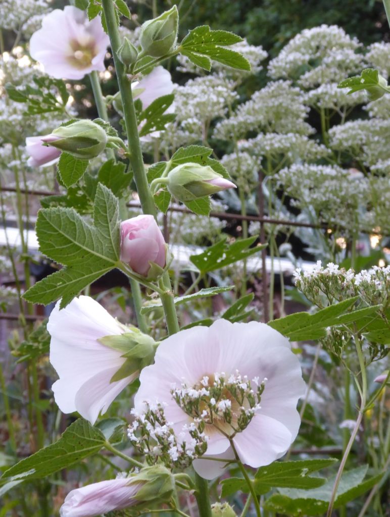 Valeriana officinalis is a good example of a perennial I let self seed , it is so delicate and tall and has the sweetest scent. In the image below it has self seeded behind the hollyhock, which I grew from seed years years ago.